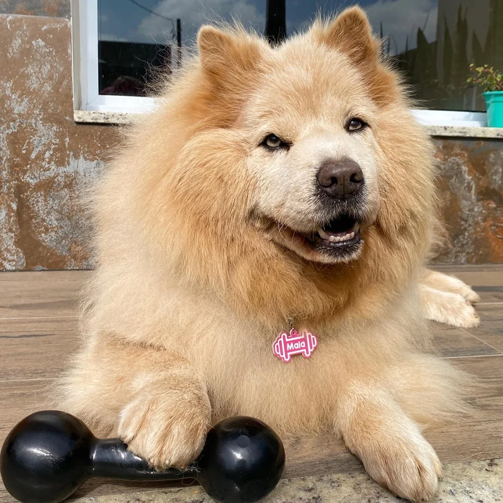 A tag de identificação para cachorros modelo Halter da Dog Vibe representa a vida saudável com exercícios.